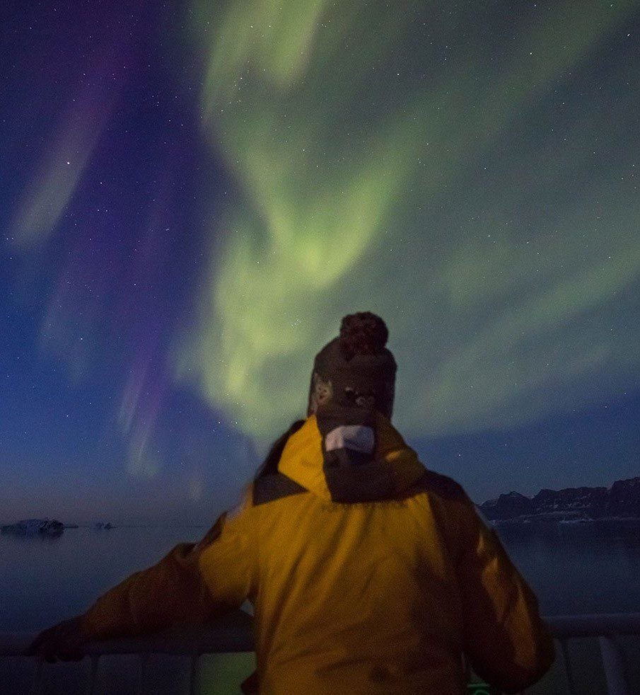 Enquanto muitas experiências de aurora boreal acontecem em terra entre outubro e março, essa expedição é diferenciada — é uma viagem de navio, navegando entre icebergs, fiordes e canais remotos do Ártico.